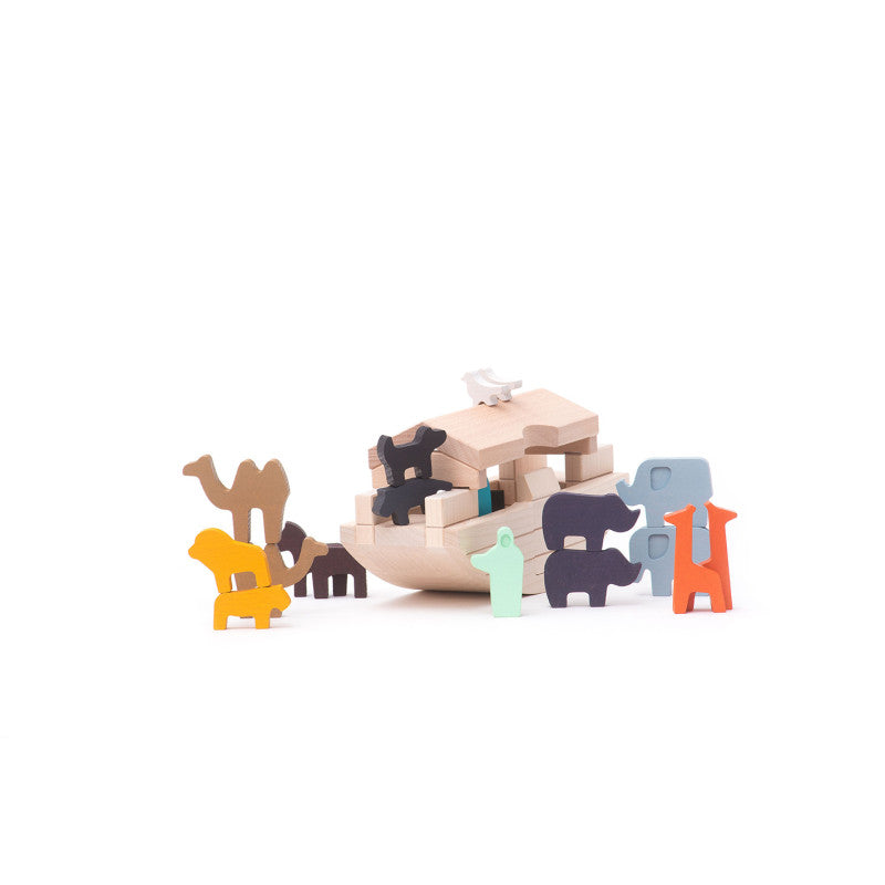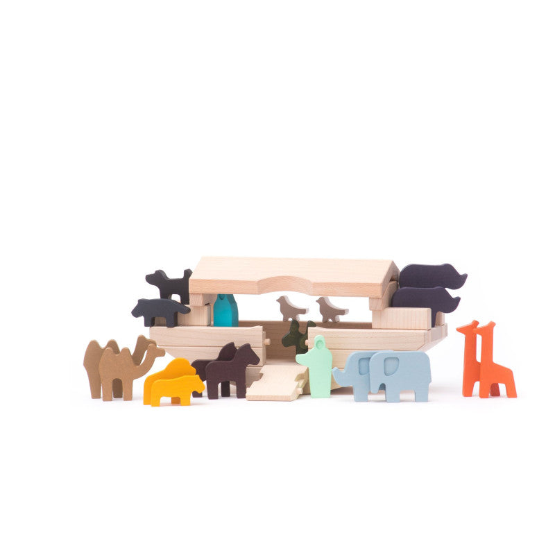 To Noe i Nammah, którzy wraz ze swoimi zwierzętami wyruszyli w podróż. Czworonożnych pasażerów jest 18, co daje 9 par, z których każda jest w innym stonowanym kolorze. Arka ma dach, który można podnieść i pomost, po którym można bezpiecznie przejść, by dostać się do jej wnętrza. Ale to nie wszystko. Arka to łódź - dlatego się kołysze. Należy być ostrożnym i skoncentrowanym, gdyż pasażerowie mogą stracić równowagę. Zabawa Arką dostarcza wielu korzyści. Dzieci ćwiczą umiejętności związane z rozwojem motoryki małej oraz rozwijają wyobraźnię. Arka może być wykorzystywana jak punkt wyjścia do opowiadania przypowieści o Noe i Nammah, jak i wymyślania nowych alternatywnych wersji historii.