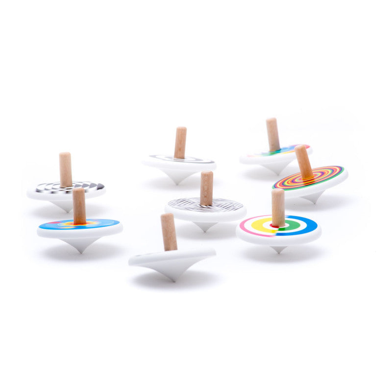 Ruch obrotowy bączka sprawia, że proste grafiki rozmywają się tworząc ciekawe efekty i złudzenia optyczne.