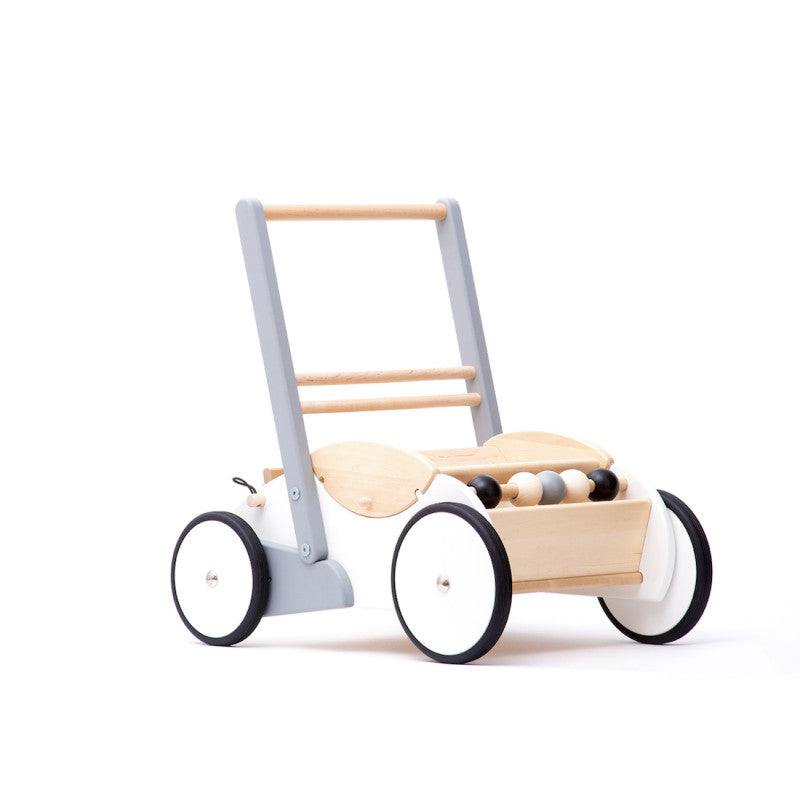 Drewniany chodzik marki BAJO to niezastąpiony towarzysz pierwszych kroków Twojego dziecka. Zaprojektowany, by wspierać rozwój motoryki, równowagi i koordynacji, łączy funkcjonalność z pięknym, ponadczasowym designem. Wykonany z certyfikowanego drewna, jest bezpieczny, trwały i przyjazny dla środowiska.