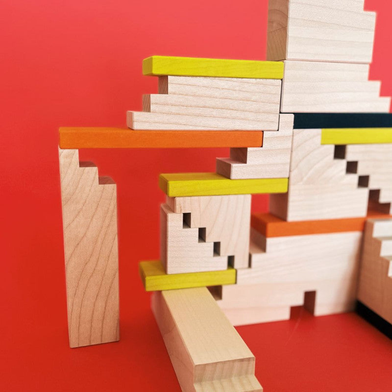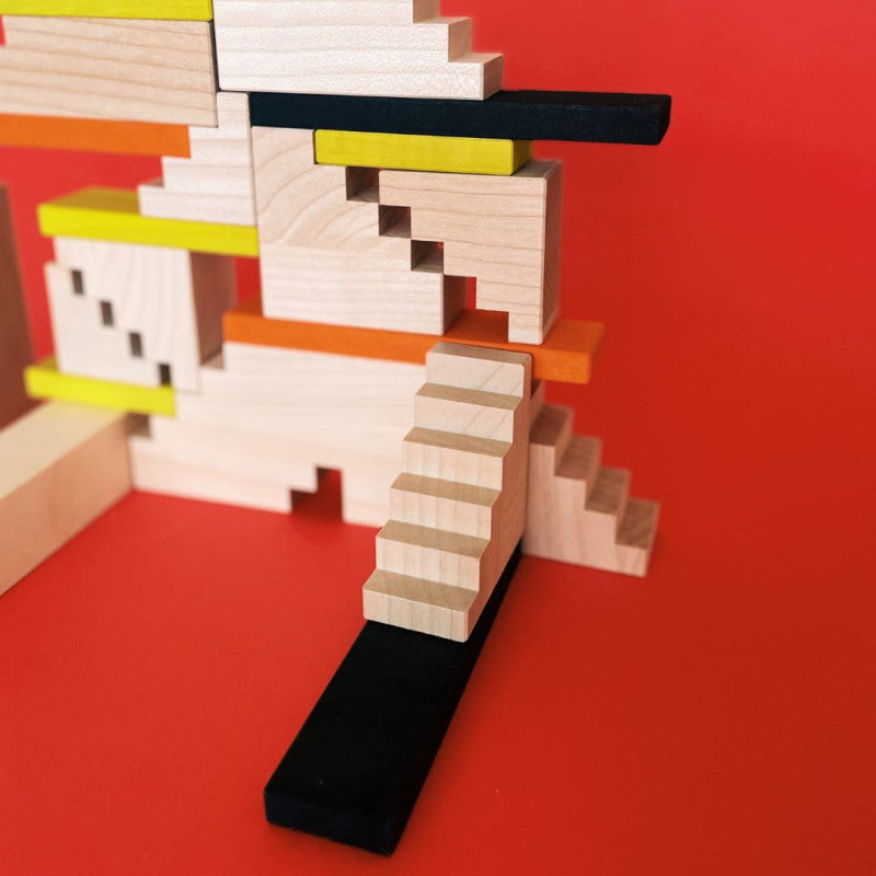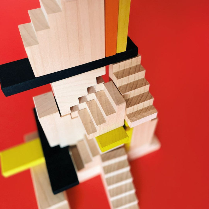 Zabawka składa się z 21 elementów, które pozwalają tworzyć zarówno realistyczne konstrukcje, jak i te magiczne, wykraczające poza granice logiki. Projekt, nawiązujący do grafik M.C. Eschera oraz architektury Ricardo Bofilla, pobudza wyobraźnię i kreatywność. Budowanie z tych klocków to nie tylko zabawa, ale też ćwiczenie planowania, przestrzennego myślenia i swobodnej ekspresji.