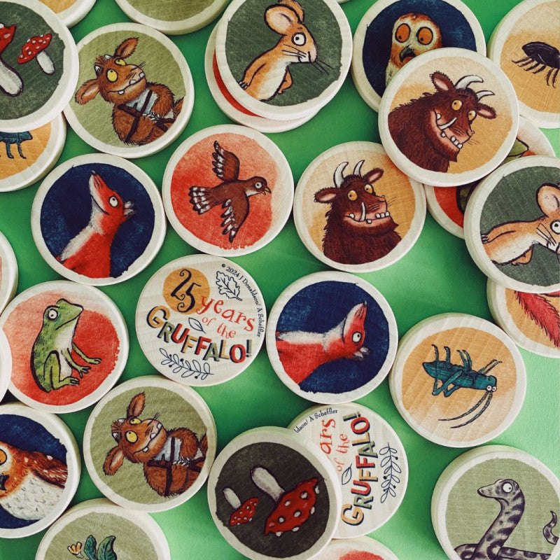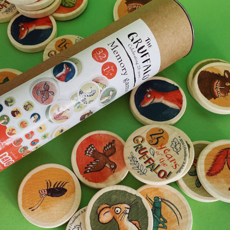 Gra memo to świetna zabawa, która rozwija pamięć i zdolności koncentracji u dzieci. Gra polega na szukaniu par krążków z obrazkami przedstawiającymi postacie z bajki Gruffalo. Dzieci muszą zapamiętać położenie krążków, aby znaleźć pasujące pary, co angażuje ich umysł i uczy cierpliwości.