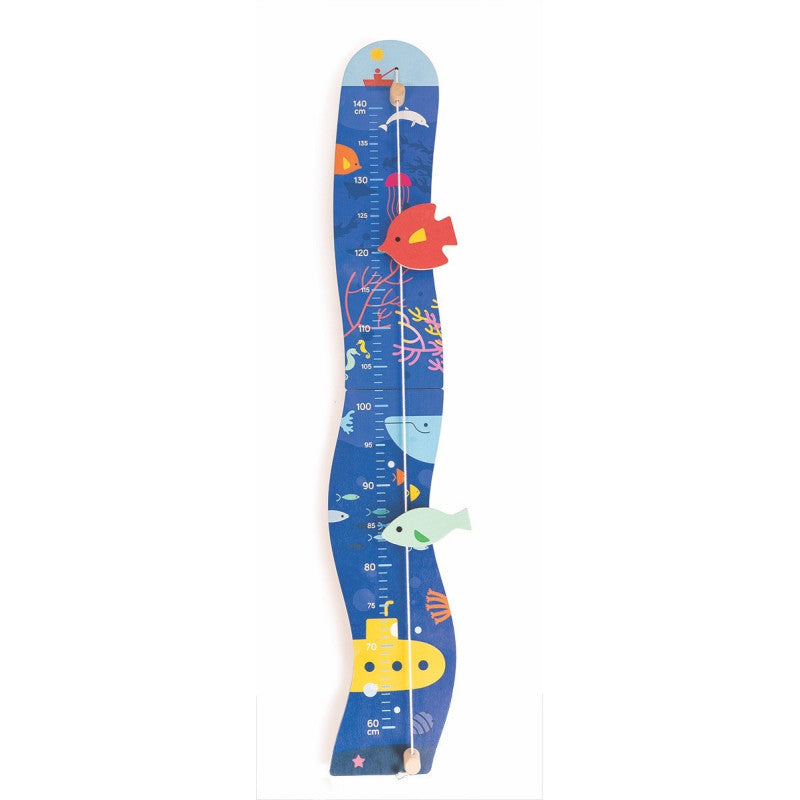 Dzięki magnetycznym znacznikom w kształcie ryb, mierzenie wzrostu staje się zabawą! Dziecko może samo zaznaczać swój postęp, przesuwając magnesy na odpowiednią wysokość. Zakres skali od 60 do 140 cm sprawia, że miarka będzie towarzyszyć rodzinie przez długie lata.