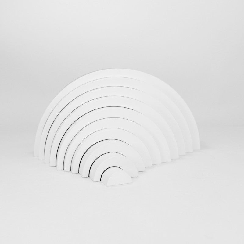 Zestaw 10 drewnianych łuków w żywych kolorach tęczy to zaproszenie do kreatywnej, otwartej zabawy. Każdy łuk jest podwójnie kolorowy – z jednej strony ma inny odcień niż z drugiej – co daje jeszcze więcej możliwości układania, budowania i eksperymentowania.