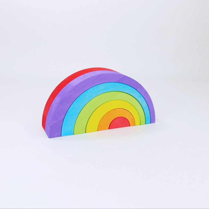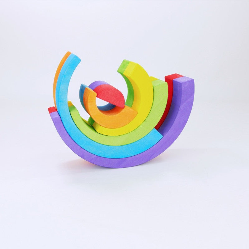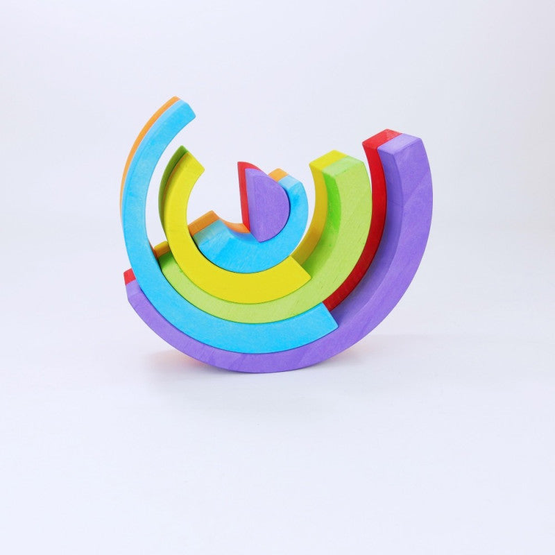 Mała tęcza to kompaktowy zestaw 6 drewnianych łuków w intensywnych kolorach – idealny do pierwszych konstrukcji i swobodnej zabawy. Każdy łuk ma unikalny kształt i kolor, a całość zachęca do budowania mostów, tuneli, wież lub abstrakcyjnych układów. Tęcza dostępna jest w dwóch wersjach kolorystycznych: klasycznej, wielobarwnej oraz eleganckiej, czarno-białej – każda z nich rozwija wyobraźnię i wrażliwość estetyczną dziecka.