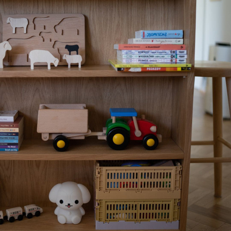 Traktor można łączyć z innymi zabawkami BAJO, takimi jak małe klocki, mini samochodziki czy drewniane zwierzątka, tworząc własne farmy i scenariusze zabaw.