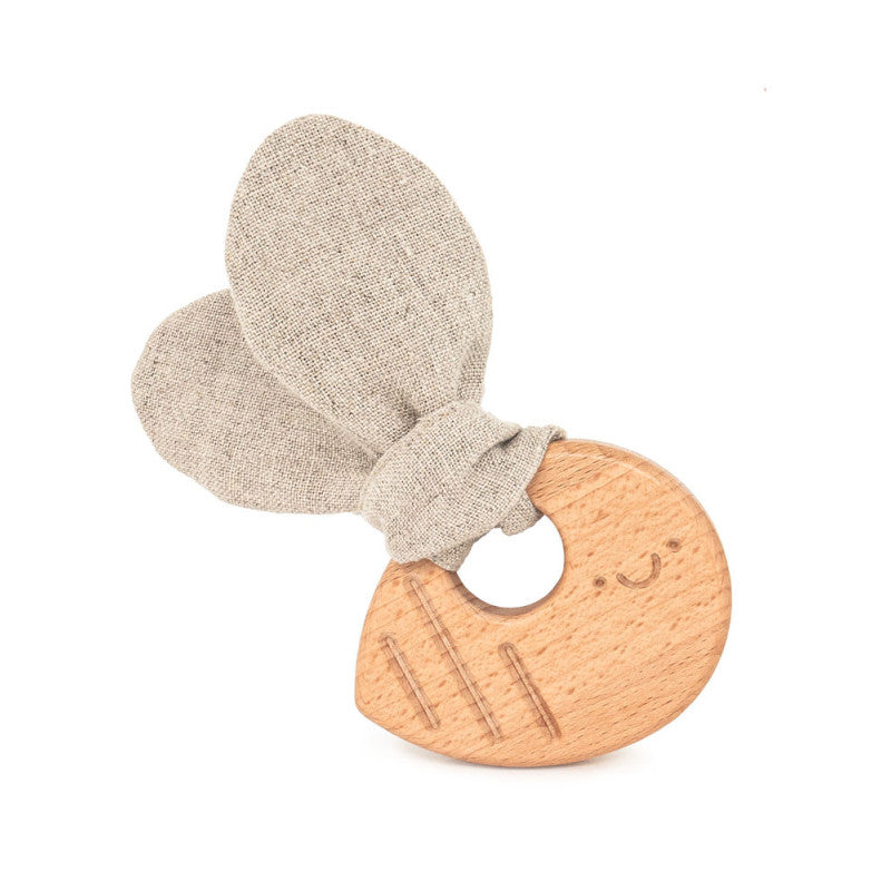 TOBE - Drewniany gryzak sensoryczny - Pszczoła (tkanina konopna) - EKO